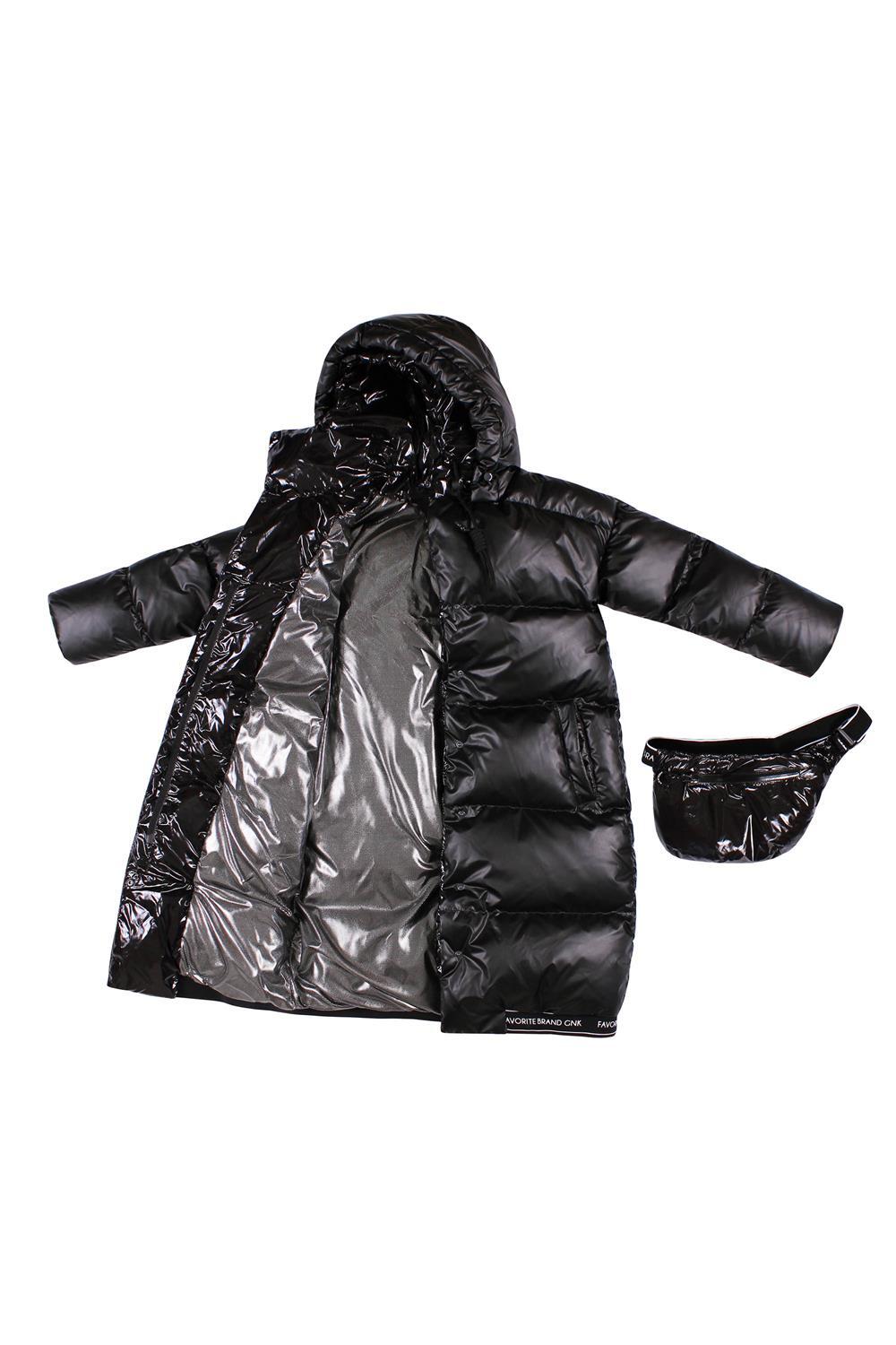 Пальто длинное, объемного прямого силуэта, с имитацией двойного (многослойность).В комплекте: Поясная сумка.